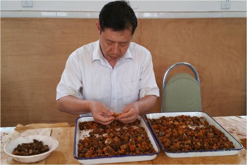 雖已為人師,他們?nèi)晕赐O聦W(xué)習(xí)的腳步,認(rèn)真對(duì)待每一項(xiàng)工作。鑒別牛黃是一個(gè)細(xì)致活兒,從進(jìn)入工作狀態(tài)那一刻起,劉天良就進(jìn)入了忘我的狀態(tài),戴著老花鏡,拿著放大鏡,睜大眼睛,弓著身子,一個(gè)姿勢(shì)一干就是一天。他說(shuō):“這兩年牛黃價(jià)格上漲非常快,價(jià)格高了,動(dòng)歪腦筋的人就多了,咱們必須要不停地學(xué)習(xí),收集各種信息、掌握各種判斷真?zhèn)蝺?yōu)劣的本領(lǐng),保證咱們收的牛黃不能出現(xiàn)一點(diǎn)問(wèn)題。說(shuō)句俏皮話兒,牛黃這樣的價(jià)格,里面就是摻了金子,也必須給它挑出來(lái)!”他以實(shí)際行動(dòng)向大家展示著一名中共黨員應(yīng)有的認(rèn)真與負(fù)責(zé)。