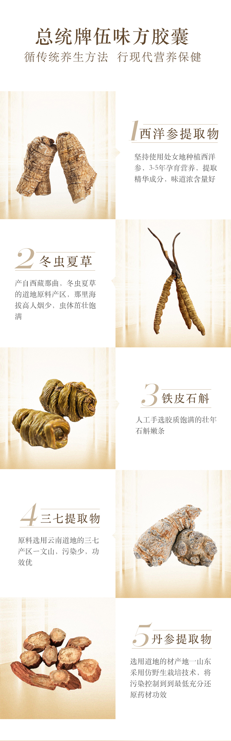 由同仁堂健康藥業(yè)出品的伍味方,顧名思義由五味藥材搭配而成: