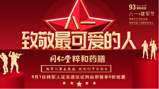 凡到店用餐的軍人朋友買單享6折優(yōu)惠