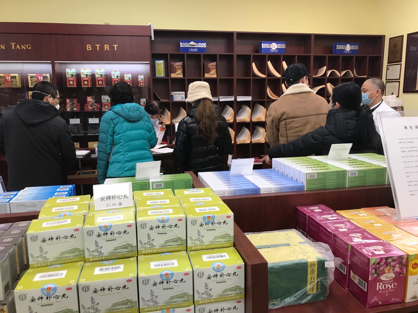 網(wǎng)上流行一句話:“我什么沒見過,這陣仗我真的沒見過。”同仁堂扶正避瘟飲一出,加拿大華人朋友圈就被刷爆了。“那段時間,多倫多的門店就是戰(zhàn)場,每天門店還沒開業(yè),顧客就已經(jīng)排起了長龍,一張張?zhí)幏较裣卵┮粯佣焉险{(diào)劑臺,電話都不敢離人,上個洗手間就能漏掉好幾個咨詢”。數(shù)據(jù)也變得忙碌起來:交易次數(shù)是平時的3倍,防疫產(chǎn)品銷量是平時的5倍,咨詢?nèi)藬?shù)是平時的3倍……