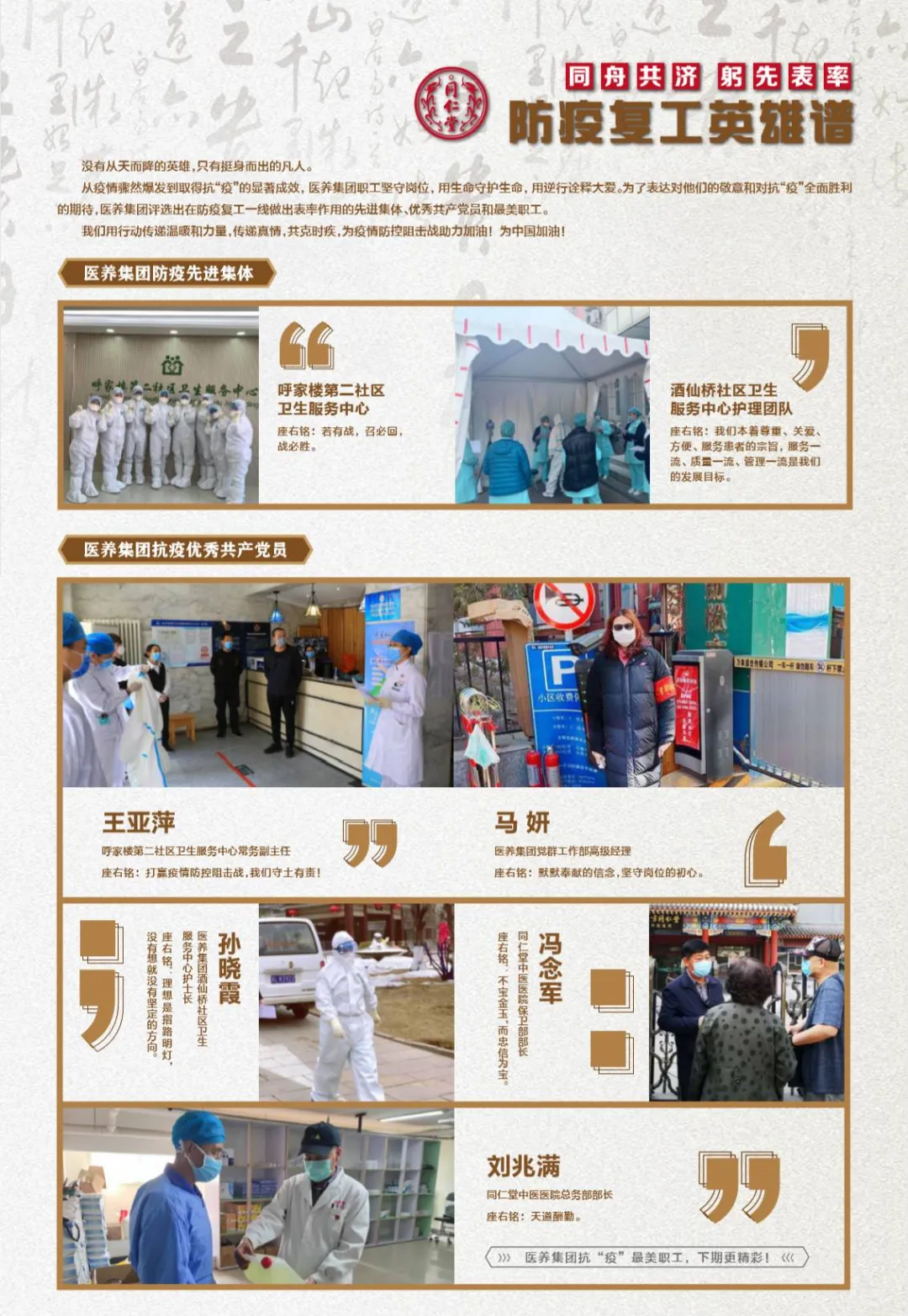 在同仁堂醫(yī)養(yǎng)集團(tuán)最大的會(huì)議室——第一會(huì)議室外,有一塊別具一格的墻面:上面圖文并茂,歷歷如繪。這就是同仁堂醫(yī)養(yǎng)集團(tuán)“社會(huì)主義核心價(jià)值觀黨建文化墻”。這5幅文化墻展板如同5位“講解員”,從疫情防控瞬間、一線黨員先鋒、基層最美職工、第三次黨代會(huì)精選、同仁堂醫(yī)養(yǎng)集團(tuán)成立幾個(gè)方面,將同仁堂醫(yī)養(yǎng)集團(tuán)踐行社會(huì)主義核心價(jià)值觀、傳遞正能量的故事娓娓道來。其中最動(dòng)人心弦的就是在新發(fā)地聚集性疫情中,同仁堂醫(yī)養(yǎng)集團(tuán)下屬社區(qū)醫(yī)院的醫(yī)療工作者們在防疫一線發(fā)生的感人故事。