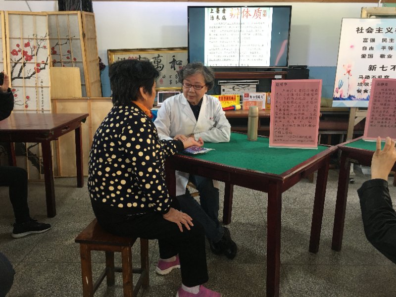 ▲同仁堂商業(yè)集團(tuán)上海公司趙愛(ài)華大夫?yàn)榛颊咴\脈