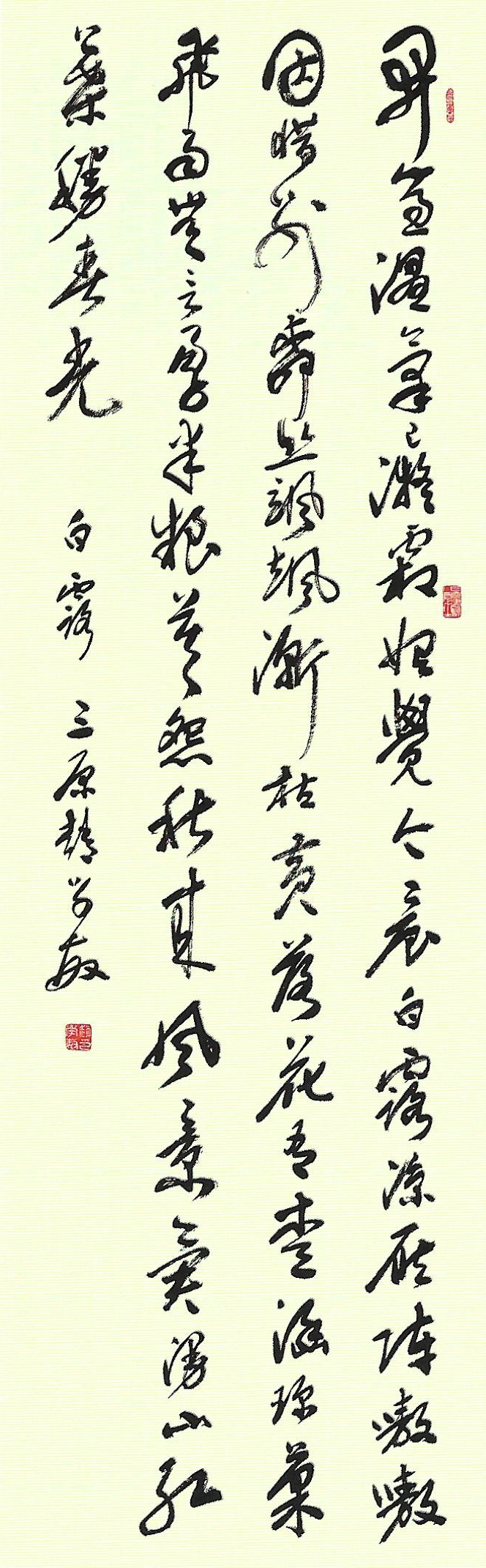 開簾濕氣已凝霜,始覺今晨白露涼。