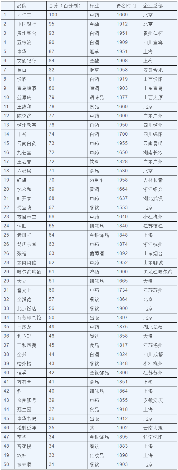 ?胡潤(rùn)研究院是胡潤(rùn)成立的專門研究編排百富榜的機(jī)構(gòu),今年首次發(fā)布“中國(guó)最具歷史文化底蘊(yùn)品牌榜,50個(gè)中國(guó)內(nèi)地最成功的60歲以上品牌上榜。