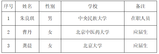 北京同仁堂研究院按照2023年度招聘計(jì)劃,嚴(yán)格履行招聘程序,擬錄用以下人員,現(xiàn)予以公示。公示期間如有問題,請(qǐng)向北京同仁堂研究院黨群工作部反映。