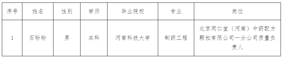 北京同仁堂中藥配方顆粒投資有限公司擬錄用人員名單公示